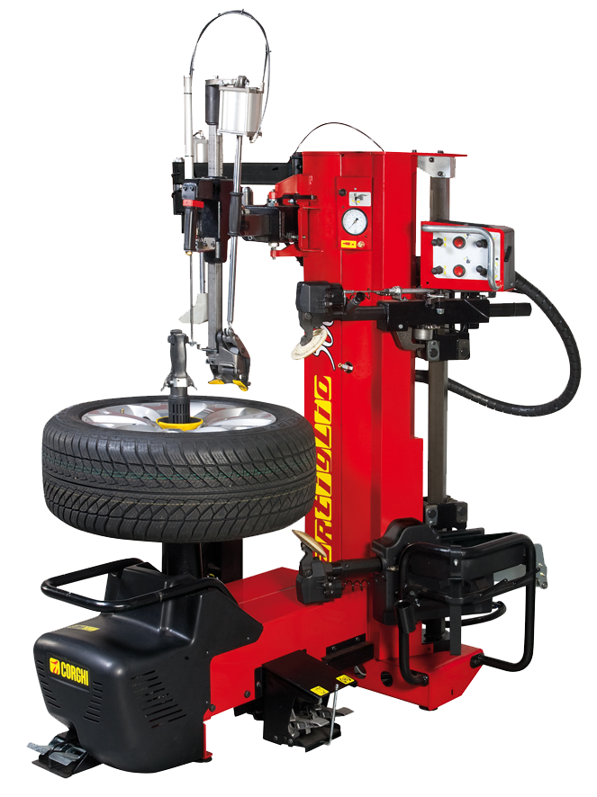 Automatyczna montażownica drugiej generacji (zakres od 12″ do 32″) „Leva la leva” (bez użycia łyżki monterskiej). Jeszcze bardziej wydajna i perfekcyjna. Artiglio 500 2V z podnośnikiem koła i płynną prędkością obrotów.