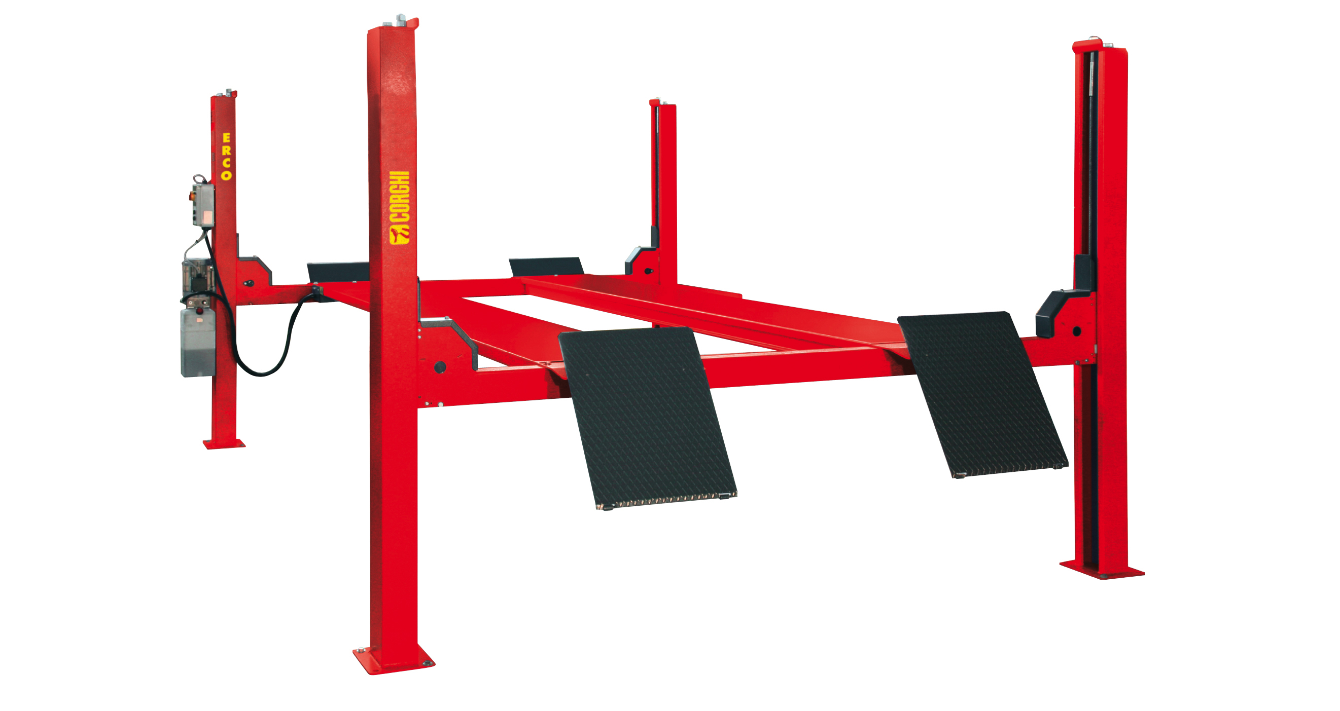 Podnośniki Corghi o modelach 4004B (do rutynowych zastosowań) oraz 4004B CT (geometria) – to podnośniki o minimalnej wys. ramp 126mm (udźwig=4000kg). Podnośnik model 4004W CT o dużych rampach, umożliwiających podnoszenie pojazdów z pominięciem czynności częstego ustawiania płyt luzujących. Podnośniki serii 4004 mają standardowo mechaniczne blokady (uruchamiane przez elektromagnes). W – dł. ramp (5100), B – dł. ramp (4950mm) CT – rampy do geometrii, płyty luzujące (wbudowane), wgłębienie na obrotnice. Cena nie zawiera montażu.